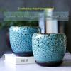 Breathable Ceramic Flower Pot with Tray for Gardenia and Succulents, Chinese Style, Large and Durable for Balcony Use.