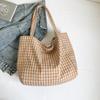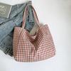 This year, large-capacity plaid canvas tote bags are popular, summer ins fashion, literature and lazy style shoulder shopping bags.