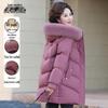 Dámský zimní prošívaný kabát střední délky s kapucí pro seniorky