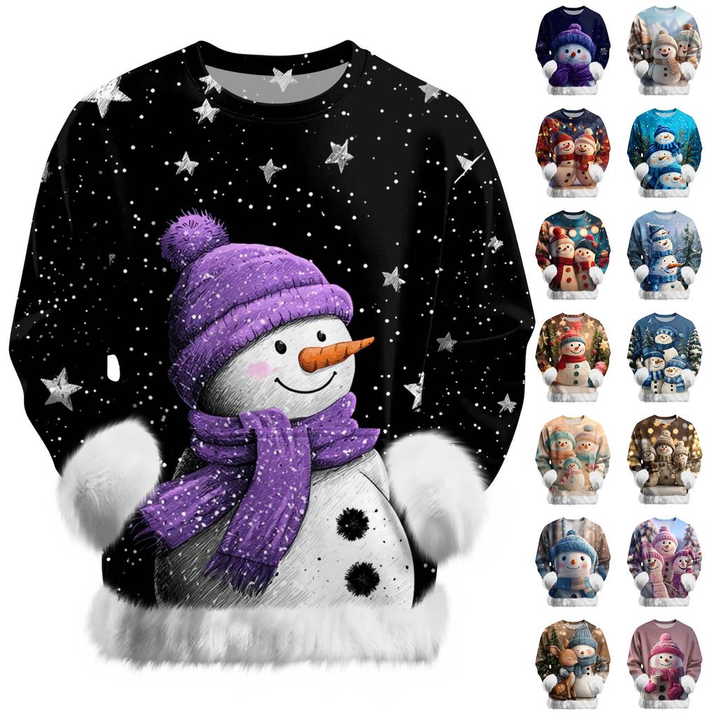 Dámská ležérní mikina s dlouhým rukávem a vánočním potiskem sněhuláka