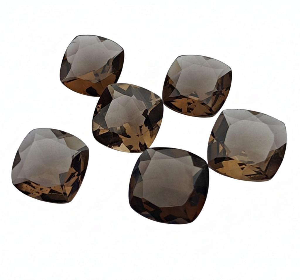 Faceted Smoky Quartz Cushion Cut Gemstones - Checkerboard Cut Brown Smoky Quartz