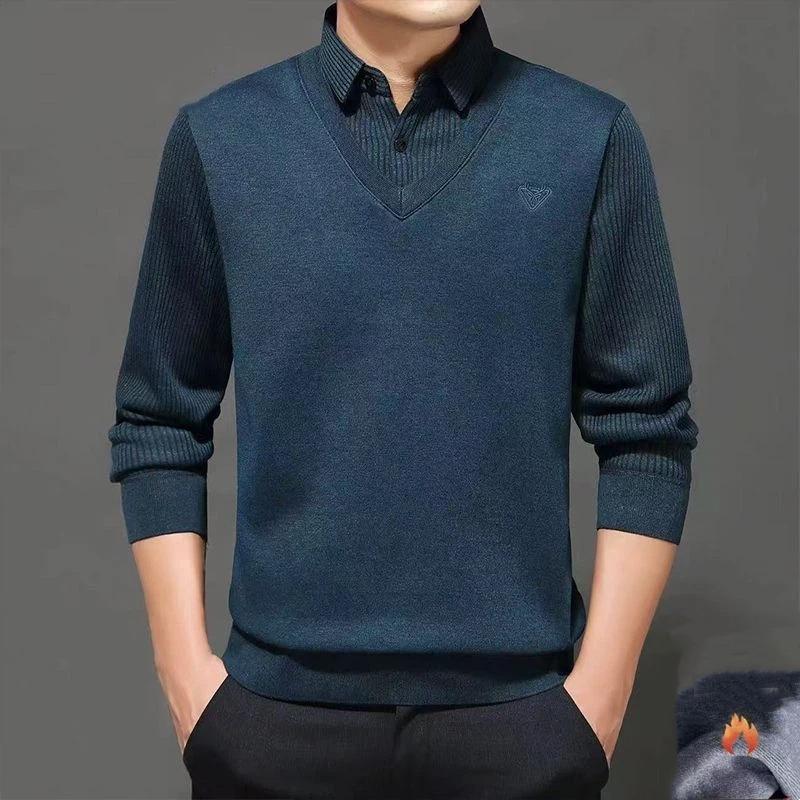 Men's Sweater Men's Winter Plus Velvet Thickened One-piece Velvet Knitted Business Warm Sweater Fake Two Pieces