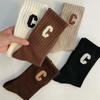 5 Pairs Women's C Letter Print Socks, Fashion Versatile Medium Tube Socks, Casual Comfortable Sports Socks For Outdoor