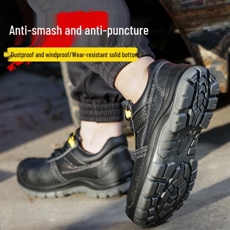 Men's Steel Toe Cowhide Work Shoes - Anti-Smash & Anti-Puncture Protective Footwear for Construction.