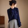 Dámský svetr z čisté vlny s 3D ručně šitými květinami
