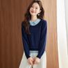 Srcr Women's Faux Two-Piece 100% Wool Contrast Collar Sweater