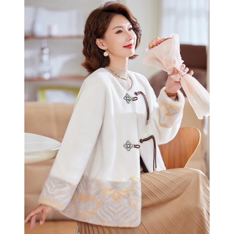 Paster New Chinese Style Faux Mink Fur Embroidered Autumn Winter Coat