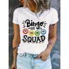 Women's Fashion T-Shirt Bingo Squad Graphic Tee Short Oversize Black Soft Cotton