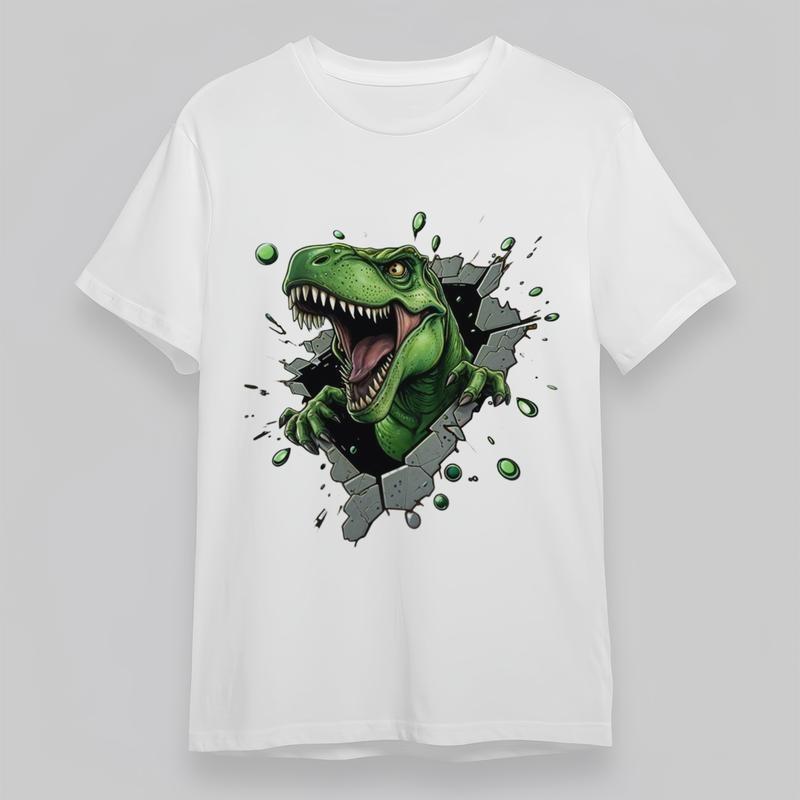 Dámské pohodlné klasické tričko plus size s grafickým potiskem dinosaura prorážejícího zeď