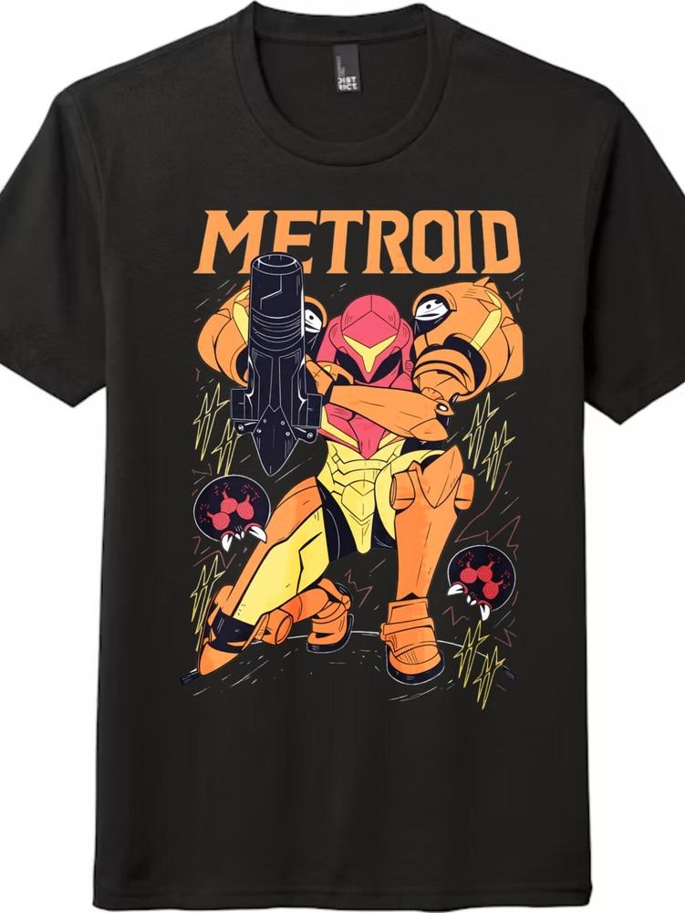 Nostalgické tričko s potiskem kresleného Metroida, Unisex Retro Ležérní Anime Tričko|Denní Nošení