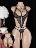1-piece Lace Deep V Crotchless Bra & Pajama Set Sheer Ultra-Sexy Lingerie For Women Open Design Full Body Night Adult Underwear