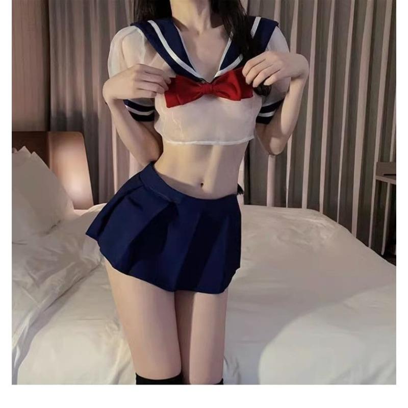Underwear Tight Student Sailor Uniform Transparent Bow Hollow Short Design Sexy Female Sexy Uniform Temptation Set