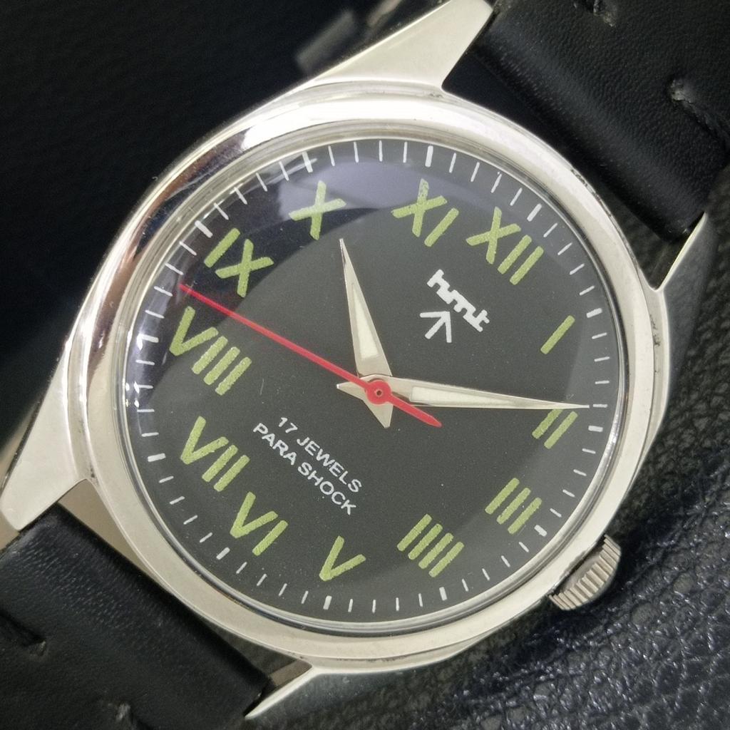 HMT HAND-WINDING INDIAN MENS VINTAGE ROMAN FIGURE BLACK DIAL WATCH a702849-1 R211-a702849