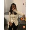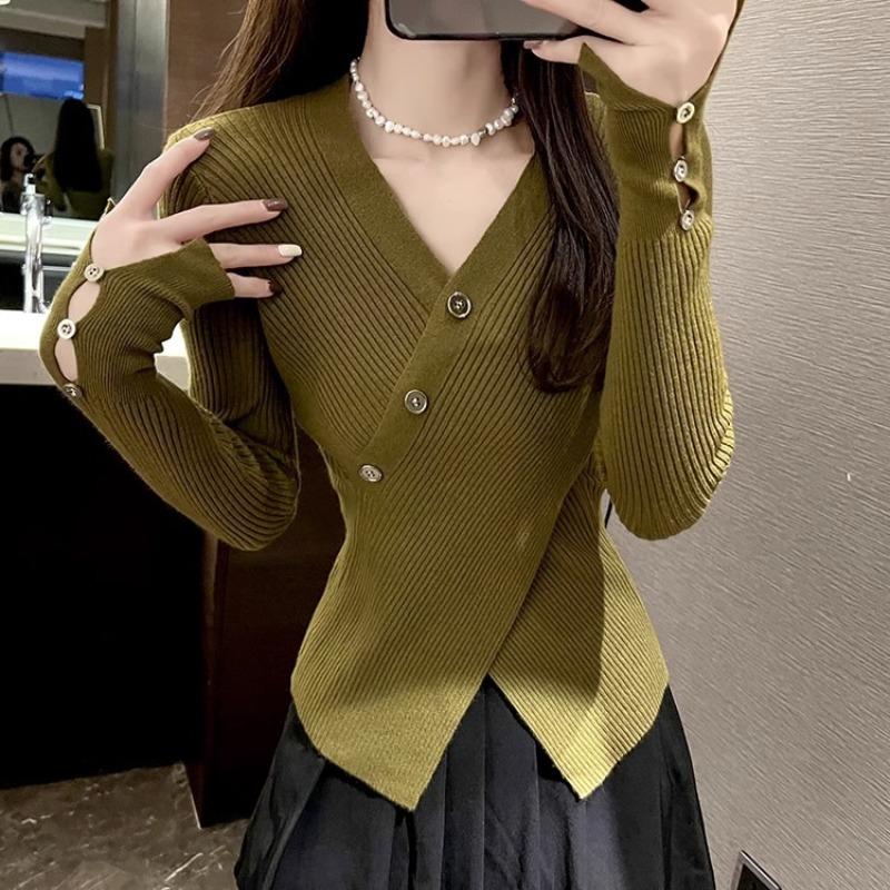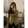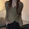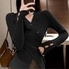 Irregular pure desire and thin, collar sweater crossed A waist slim split fork pullover knitted long-sleeved inner top