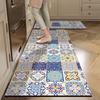 Carpet for Kitchen Pvc Leather Non-slip Floor Mat Long Strip Waterproof Oil-proof Mats Retro Colorful Plaid Style Decorative Rug