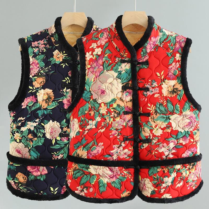 Typ knoflíkový sametová vesta bunda střední dámské podzimní a zimní oblečení retro vesta zateplená teplá vesta