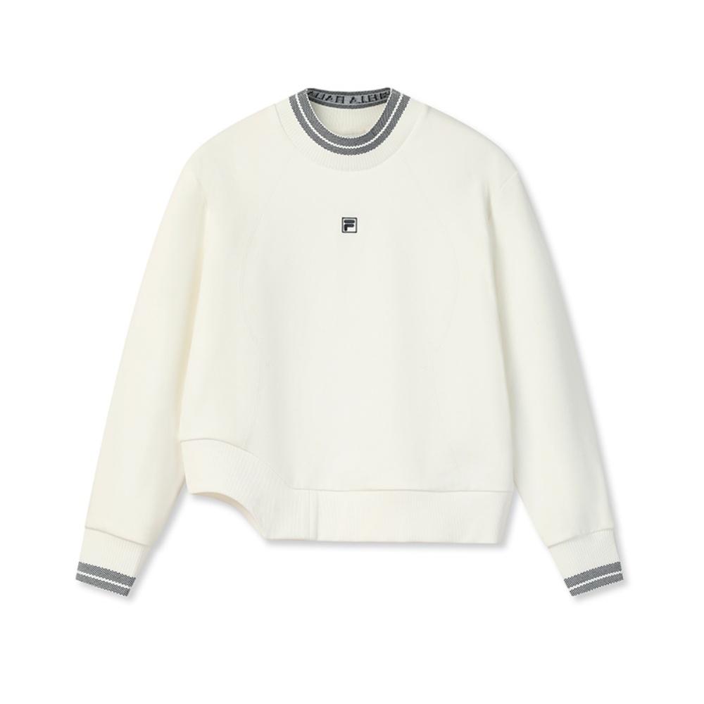 FILA Emerald Comfortable Fleece Warm Fashionable Versatile Loose Knit Pullover Sweatshirt Women sweatshirt Cream-White F11W544205FIV
