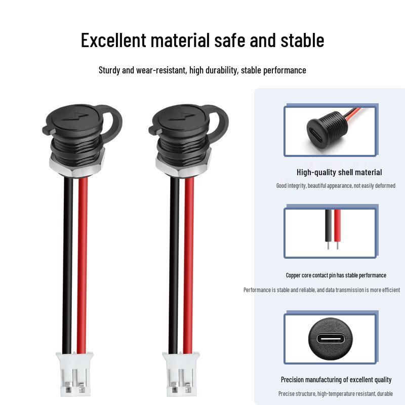 Type-C Female Socket with Dust Cap to 2.0 Terminal 1007 24AWG Waterproof Power Cable
