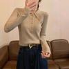 Polo collar long-sleeved knitted sweater women's clothing early autumn new waist slim-fit sweater with bottoming shirt top