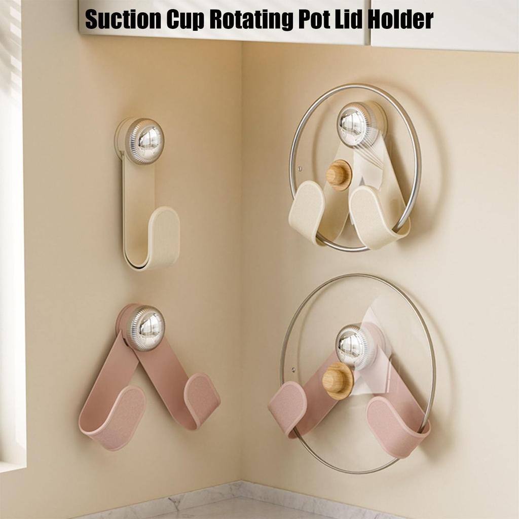 2PCS Punch Free Wall Mounted Pot Lid Holder,Adjustable Pot Lid Holder Wall-Mounted Kitchen Storage Rack,Suction Cup Pot Lid Rack