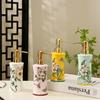 American Painted Flower Ceramic Lotion Bottle Gold Press Soap Dispenser Household Shampoo Water Bottling Bathroom Accessories