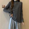 Dámský sametový polokošilek s pruhovaným dlouhým rukávem, podzimní a zimní, s volánkovým okrajem, k nošení ven