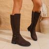 2025 Winter Vintage High Top Boots Large Size Round Toe Side Zipper Thick Heel Knight Boots Women