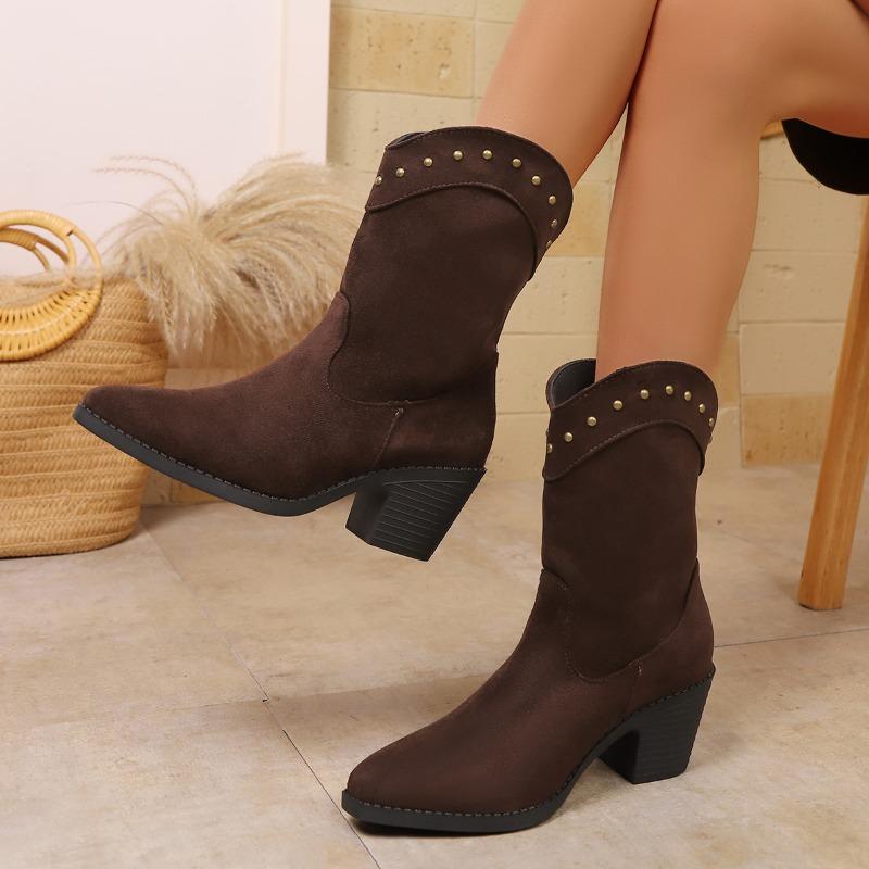 Rivet Pointed Toe British Style High Heel Fashion Boots Women's Winter 2025 New Plus Size Thick Heel Socket Martin Boots