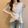 Autumn Winter V-neck Solid Irregular Waist Sweater Women Long Sleeve All-match Bottomed Pullover Knitting Top
