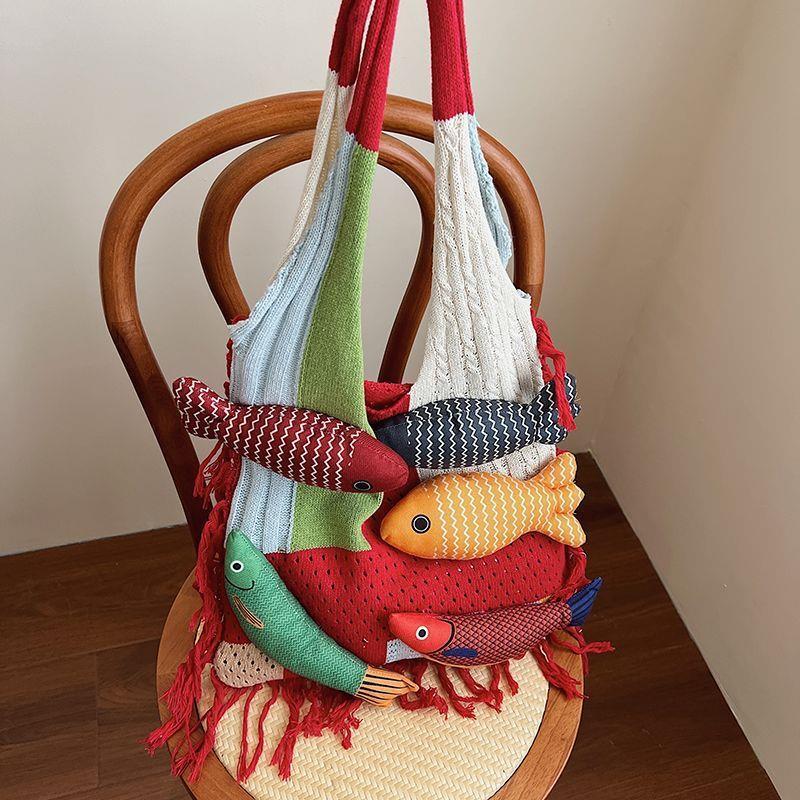 Women's Lazy Style Knitted Tote Bag - Versatile, Fashionable, Large Capacity, Single Shoulder, White