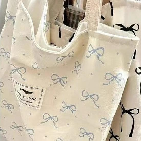 Retro Korejský Styl Plátěná Taška s Mašlí - Velká Ramenní Taška na Jarní/Letní Dovolenou