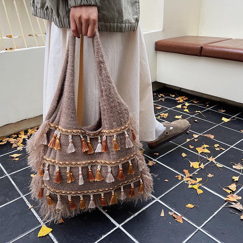 Ethnic Tassel Small Square Bag: Versatile, Large-Capacity Women's Shoulder Bag for Simple Vacation Style