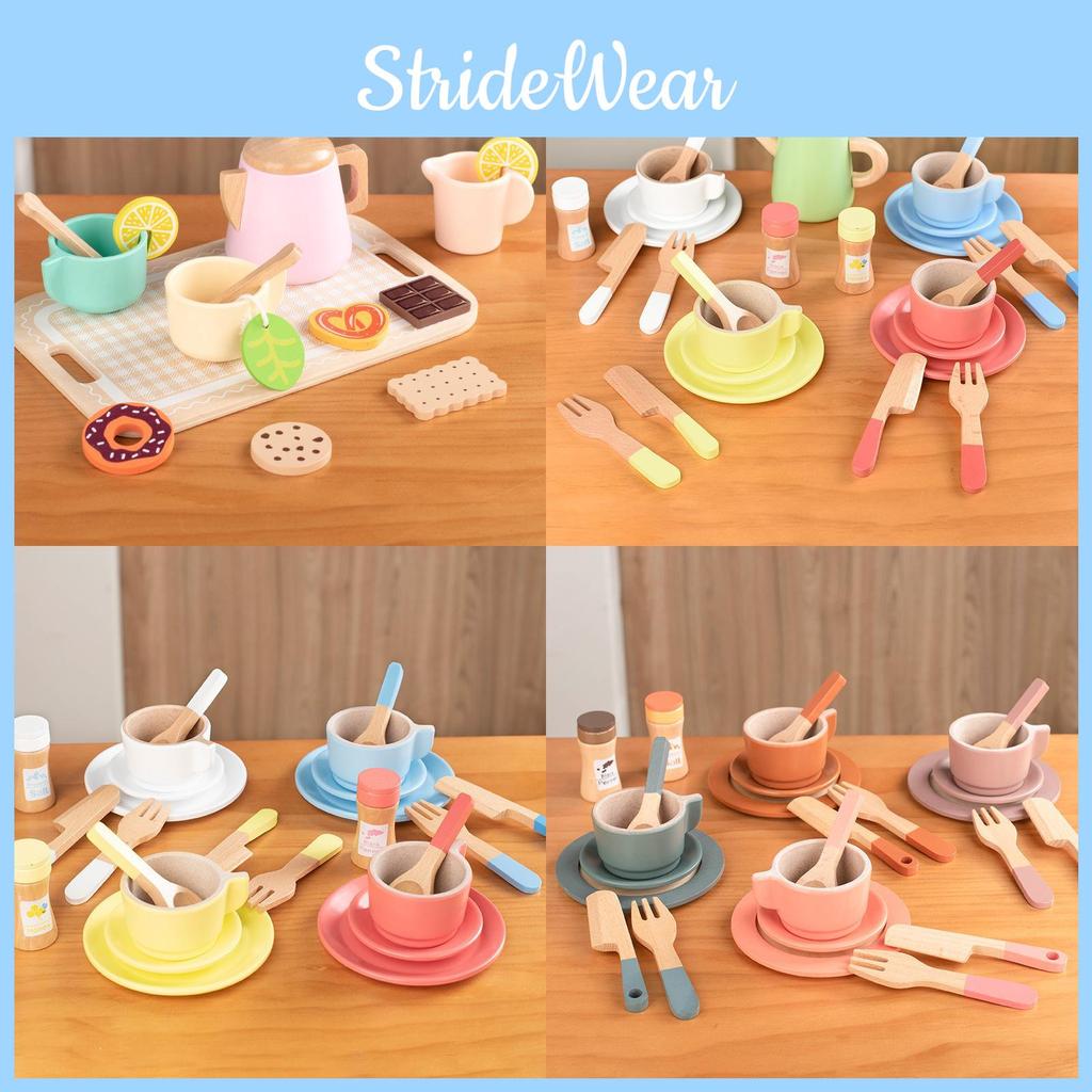 Wooden Afternoon Tea Cookies Cups Tableware Set Children Toys For Role Playing
