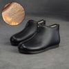 Johnature Genuine Leather Plush Warm Cotton Shoes Round Toe Flat Ankle Boots Commuting Women's Shoes