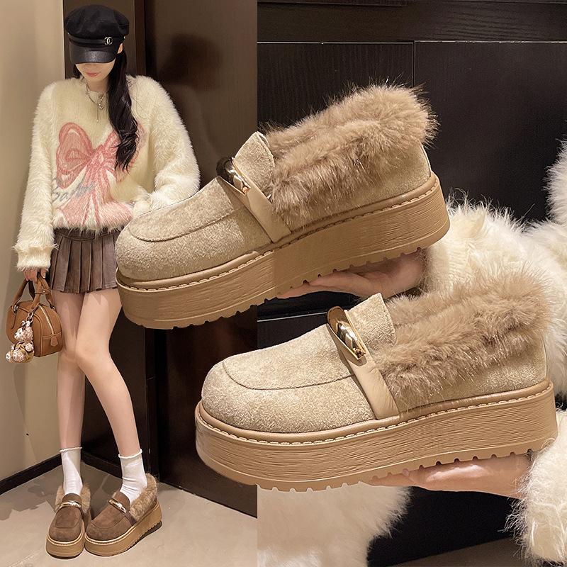 Women's soft elastic thick soles heightening winter fur one warm anti-cold padded snow boots non-slip wear casual sports cotton boots fur shoes