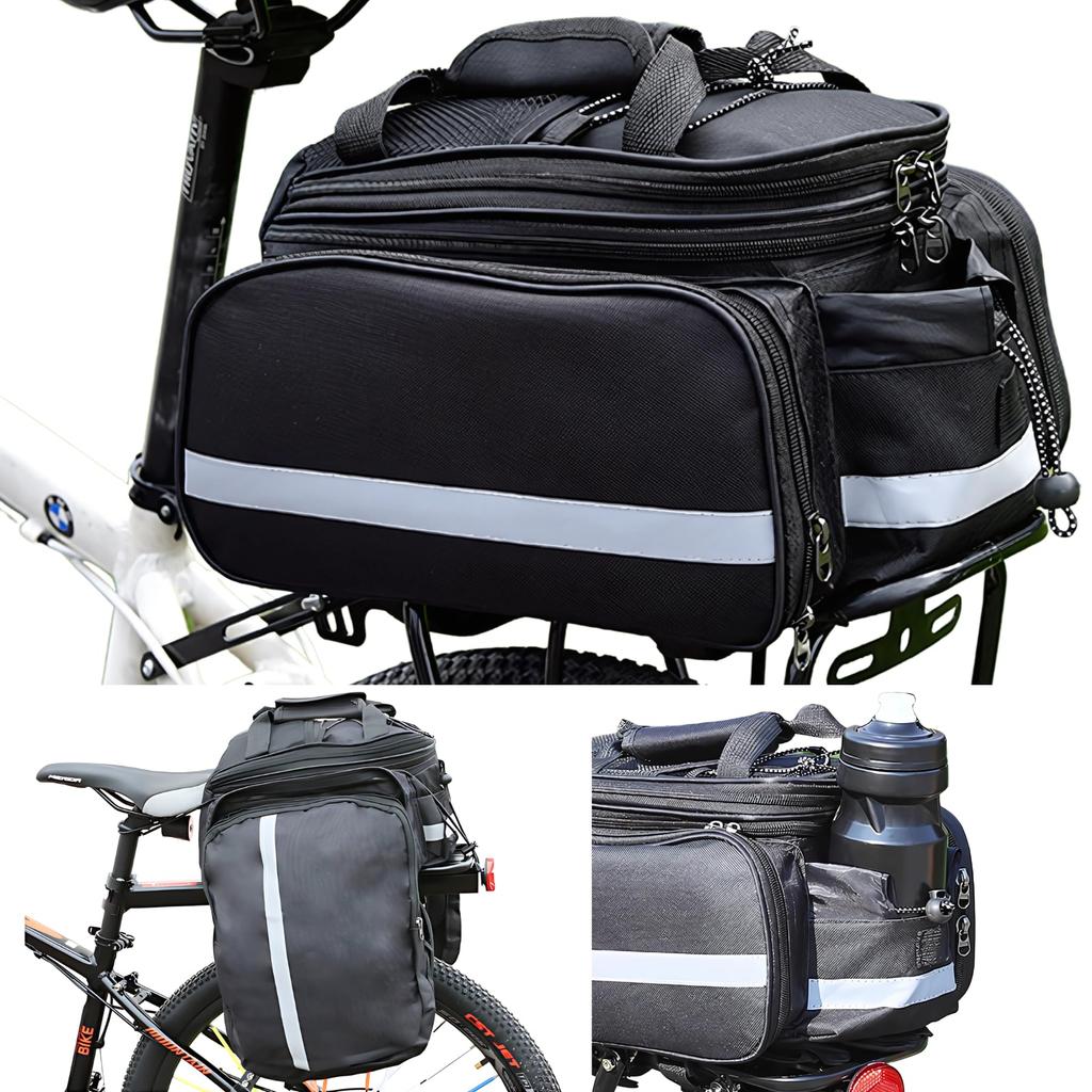 Mellbo Bike Bag, Bike Rack Bag, Shoulder Bag, Expandable 15L-25L Capacity, Velcro Closure, Zippered Pocket, Drink Holder