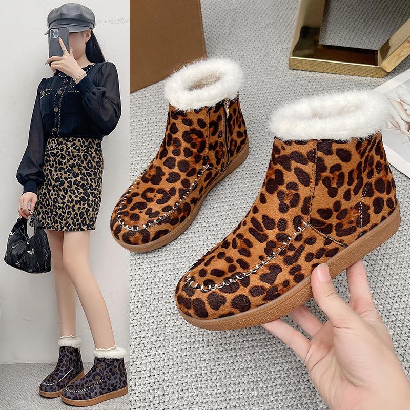 Women's Fleece-Lined Snow Boots, Thick Warm Winter Shoes with Leopard Print, Plus Size Cold Weather Footwear