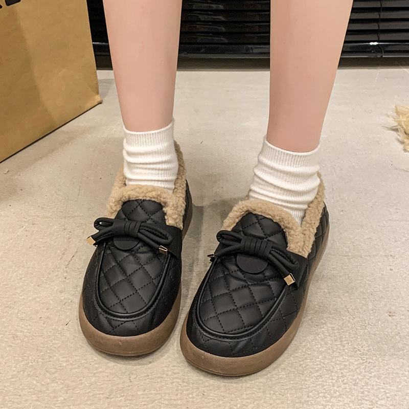Women's soft elastic thick sole a foot stirrup winter fur one warm cold padded snow boots non-slip wear casual sports cotton boots