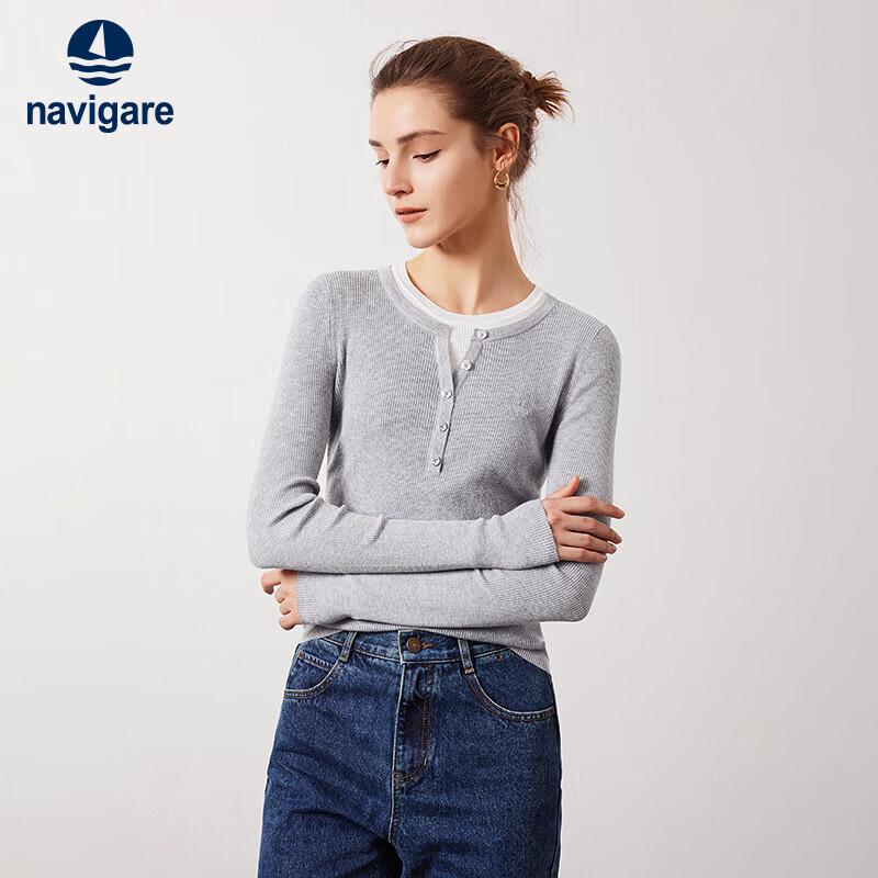 Navigare Women's Faux Two-Piece Knit Slim Fit Top