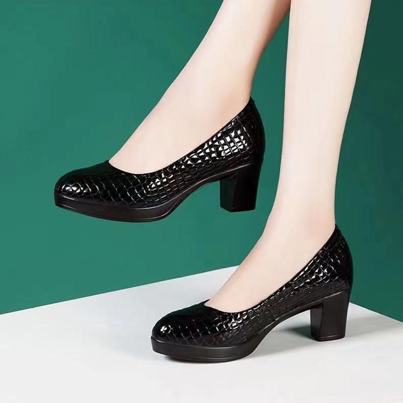 Sapatos Women Fashion Round Toe Black Plaid Pattern Chick High Heel Shoes Casual White Work
