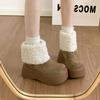 Women's soft elastic thick sole a foot stirrup winter fur one warm cold padded snow boots non-slip wear casual sports cotton boots
