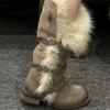 Dámské měkké elastické silné podrážky zimní kožešinová integrace teplé protichladové polstrované sněhule protiskluzové nošení ležérní sportovní vysoké trubkové kožešinové bavlněné boty