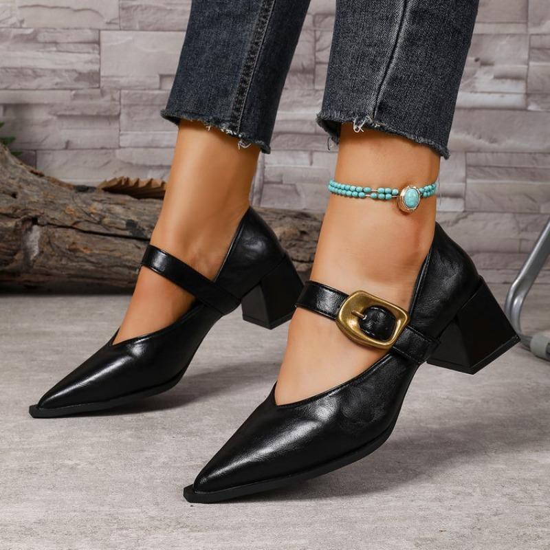 Podzimní zahraniční silný podpatek jednoslovná přezka s malými koženými botami Mary Jane dámské evropské a americké styl ostrá V ústa podpatek jednobotky