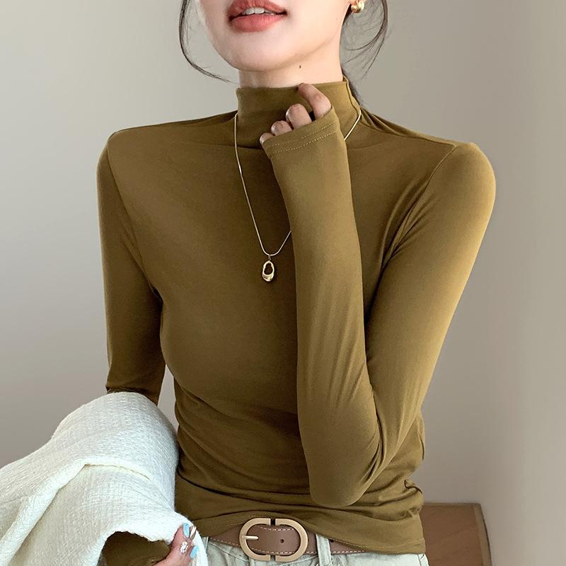 Semi-turtleneck bottoming shirt women's 2025 autumn and winter new tight-fitting long-sleeved T-shirt slim-fitting and thin foreign-style top