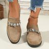 2025 Autumn New Rhinestone Suede Low-Top Shoes Thick Heels British Loafers Women