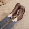 Cowhide Cotton Shoes, Flat-bottomed Wool Short Boots, Women's Winter Plus Velvet Warm Boots, Soft-soled Non-slip Leather Boots