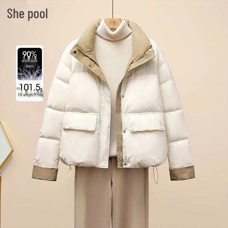She Chi Women's Color Block Stand Collar Loose Fit Duck Down Jacket