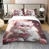Cute Flower Cat Pattern 3D Printed Bedding Set Cute Pet Theme Fashion Art Style Duvet Cover Soft Comfortable Luxury Quilt Cover