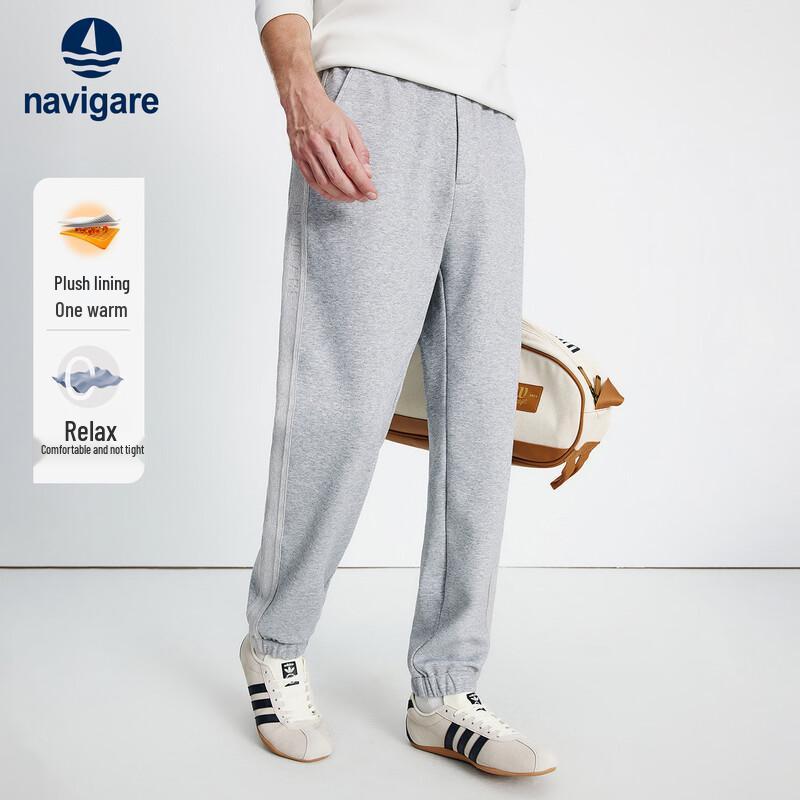 Experience ultimate comfort and style with Navigare Men's Fleece-Lined Tapered Sweatpants. Crafted from a soft fleece blend (53% Polyester, 44% Cotton, 3% Spandex) with slight stretch, these loose-fit sweatpants feature a natural waist, zipper fly, and cuffed ankles for a modern look. Perfect for sports, lounging at home, or casual wear during autumn and winter.
