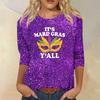 Dámské módní ležérní tričko s kulatým výstřihem a tříčtvrtečním rukávem s potiskem karnevalu